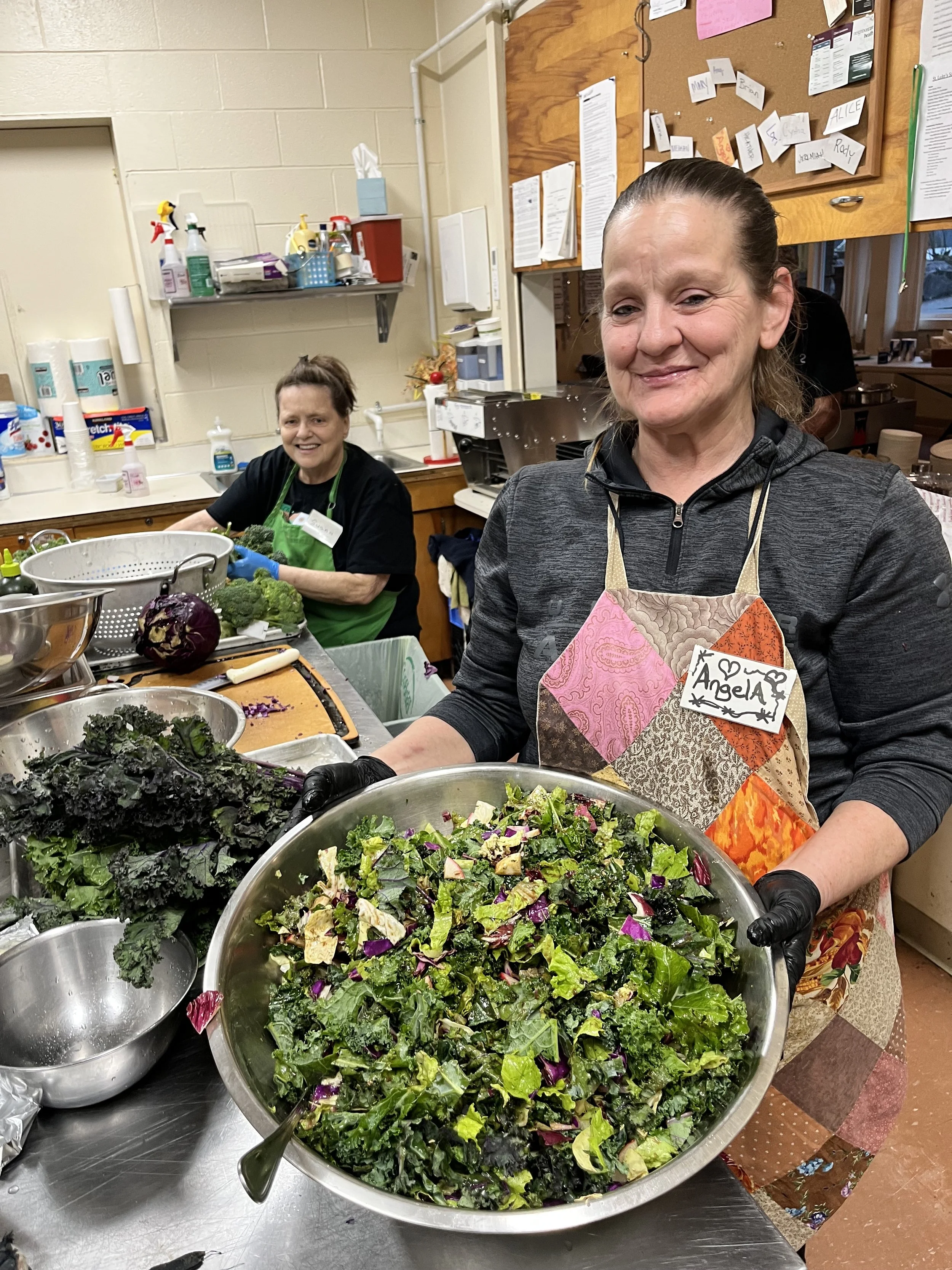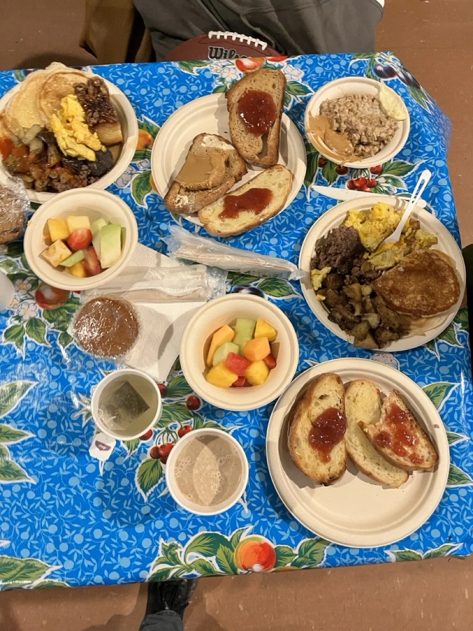 Every week, we recover food from local groceries stores, and then plan a diverse and delicious menu. Monday-Thursday, our chefs get creative, serving everything from teriyaki chicken, beef curry, meatloaf, lemon-butter salmon, and more. On Fridays, we always serve our famous pancake and eggs.